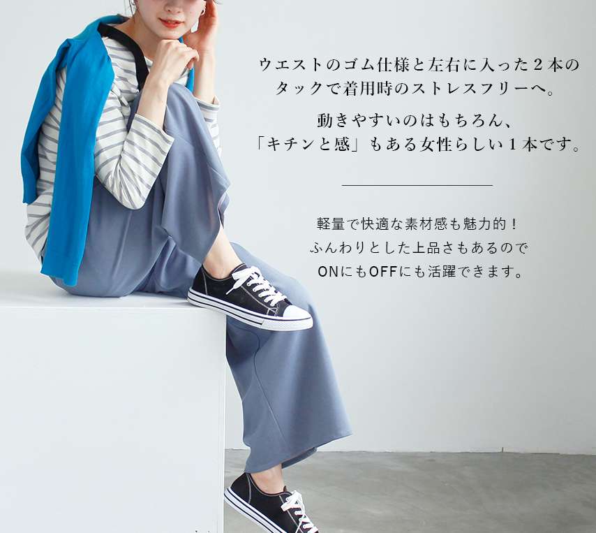~ ウエストゴム仕様と左右に入った2本のタックで着用時のストレスフリーへ ~   動きやすさはもちろ…