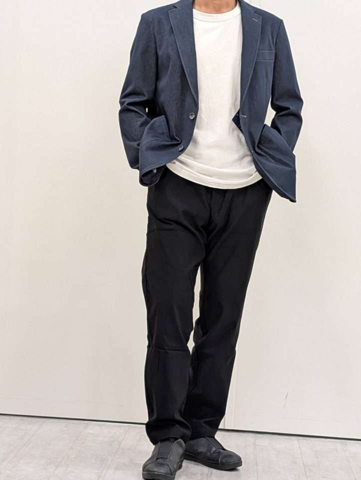 ジャケットと合わせて、ビジネスカジュアルとしても使えるキレイめのコーデにしてみました。