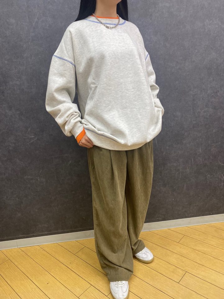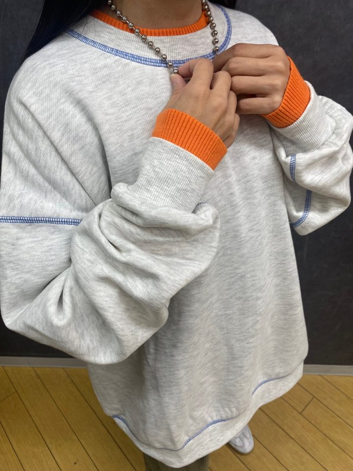 こんな風にスウェットのインナーにしても、差し色として活用出来て素敵◎