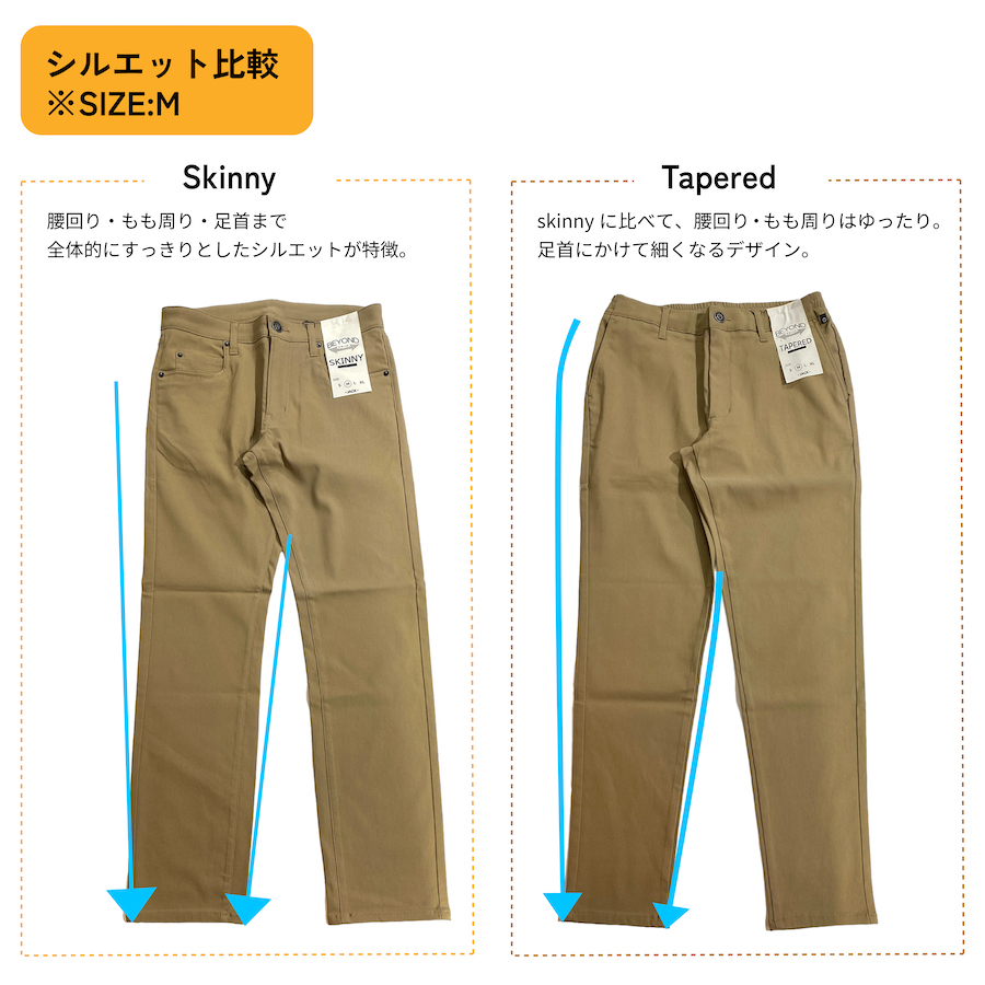ビヨンドテーパードパンツと合わせてビヨンドスキニーパンツ・ビヨンドウォームパンツも新作で販売中です。