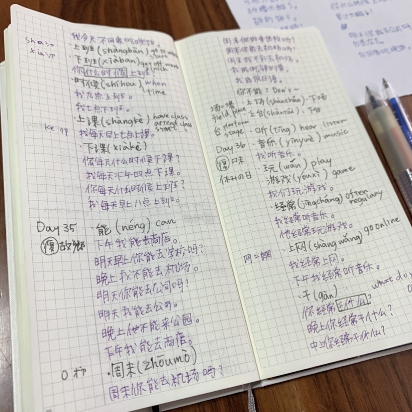 その日学んだ単語や文法を書きいれる事にしてみたんです。