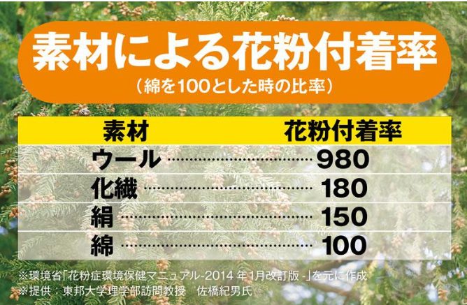 この表みると、綿を100としたときのウールの付着率は約10倍!