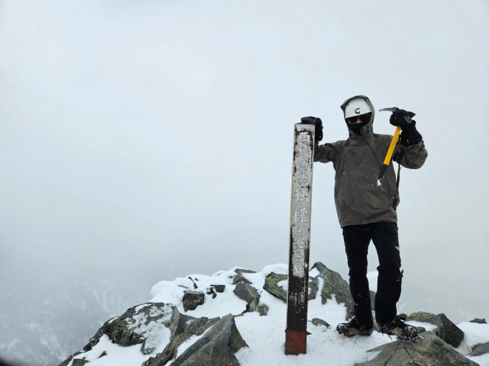 山頂手前での岩登りは、岩がむき出し部分もありアイゼンでは登りにくいところもあったが、しがみついて独標まで登頂!