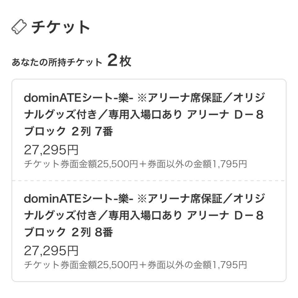 今回の神席と言われるD8ブロックの!しかもどセンター!しかも2列目!