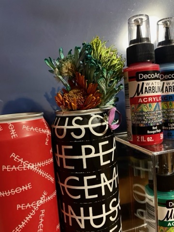 の空き缶にドライフラワー(思い出のお花)挿したり…
