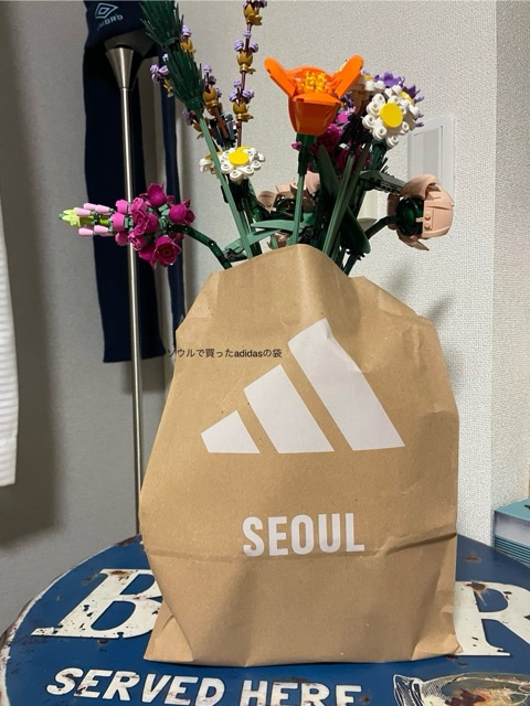 韓国のadidasで靴買った時にもらった袋を花瓶ぽくして
