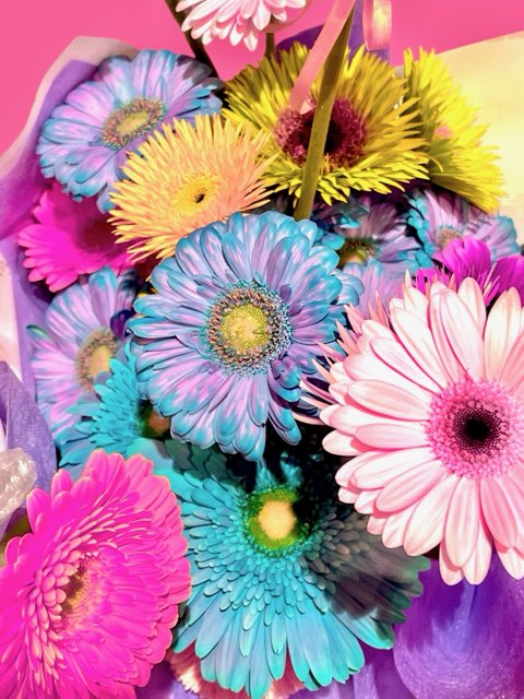 木村がここのお店の染めガーベラが大好きって言いまくってたらプレゼントしてくれたの。