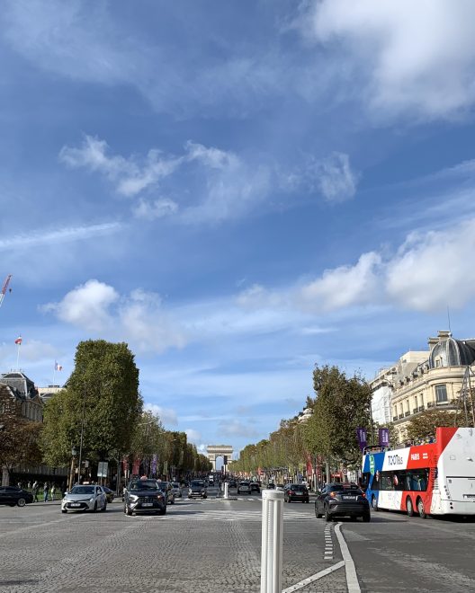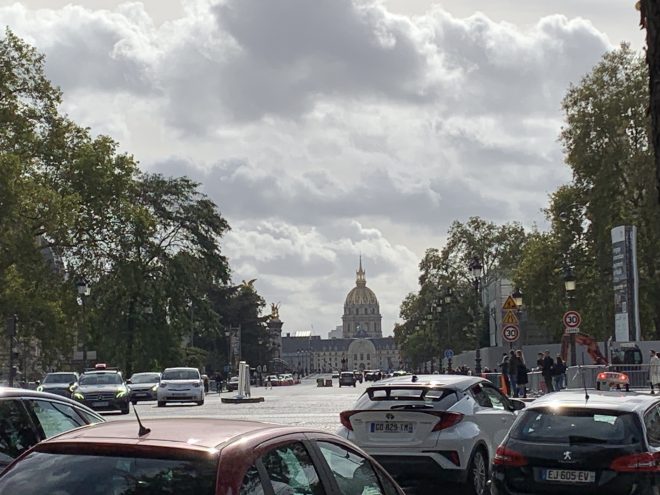 パリの道路は、大きい道だと車線の真ん中で信号が切り替わるので、