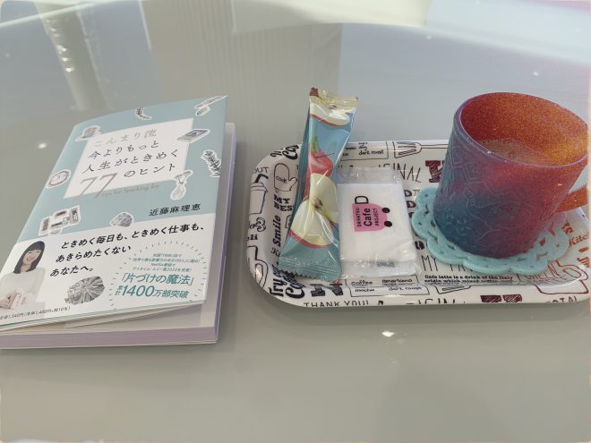 見てください、持参した本とダイハツさんが出してくれたカフェセット↓