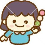 小3の娘はひな人形の前で3色ダンゴを両手に持ってポーズを決めております。