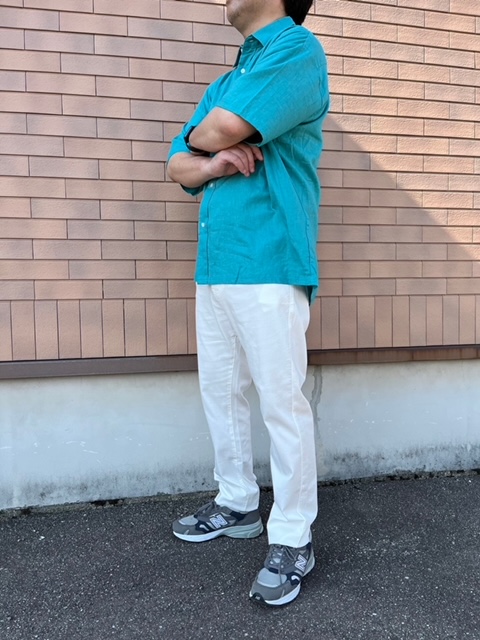 白ボトムにはポロシャツとか麻風のシャツとか 大人の男には襟付きトップスと合わせてほしいね