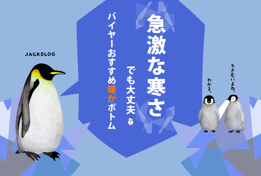 お久しぶりです。 JACKの商品部でメンズボトム担当しているみやです。 12月に入って急激に寒くなりましたね! 11月まではいつになったら寒くなるんだろ…