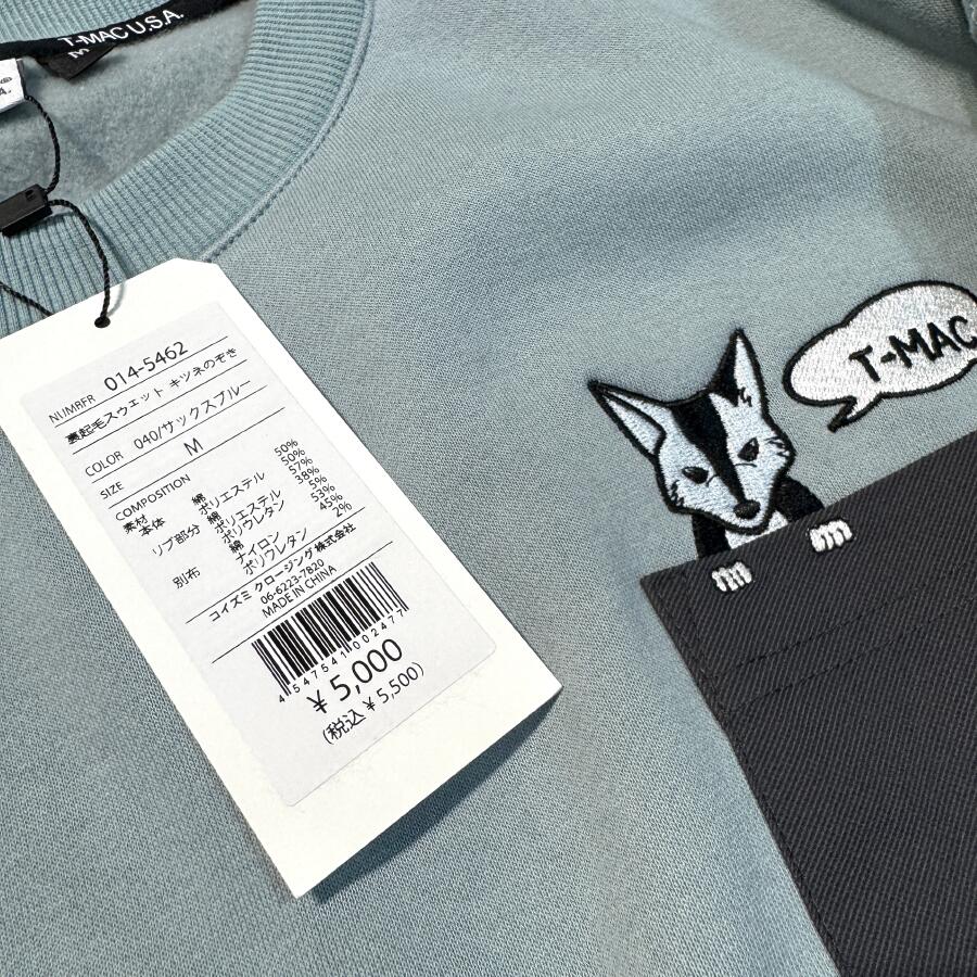 T-MACのトレーナーは、ポケットからきつねが顔を出す可愛いデザインが魅力です。