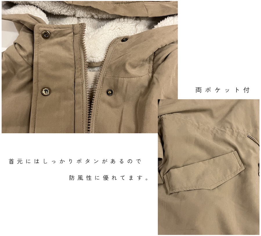 裏ボア仕様で保温性に優れ、防風性と撥水性を兼ね備えた頼れる一枚です。
