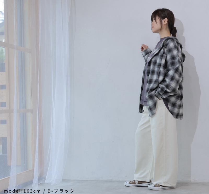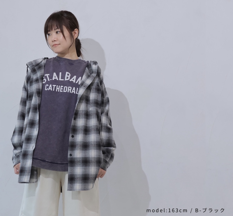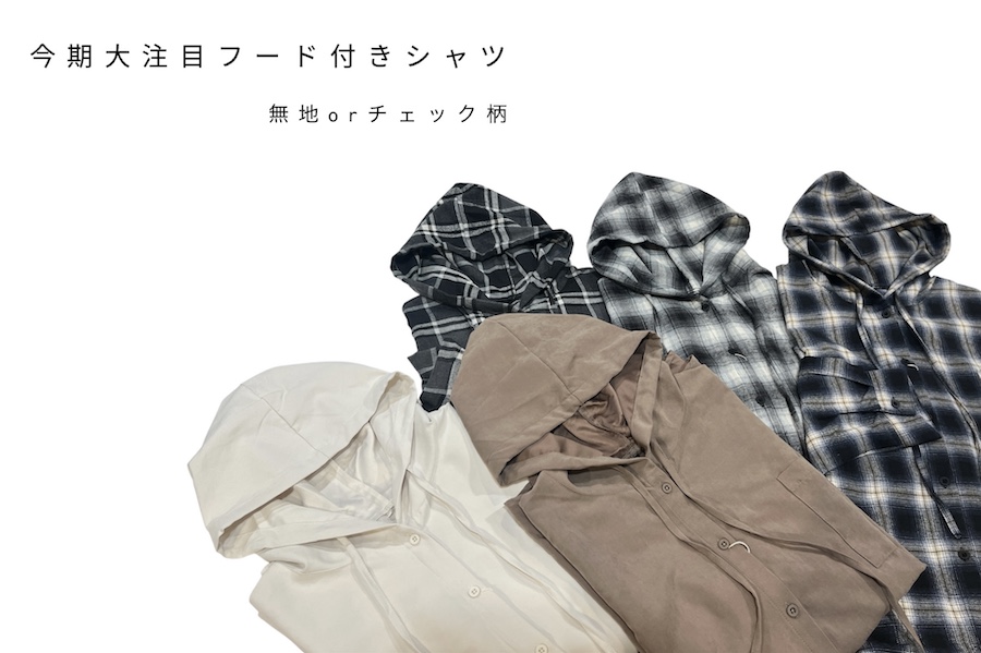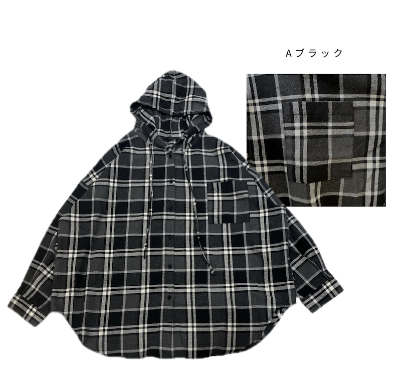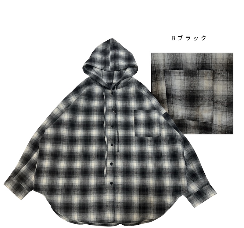 マットで落ち着いた見た目のTNピーチ チェック柄×無地で選べるフード付きシャツ!