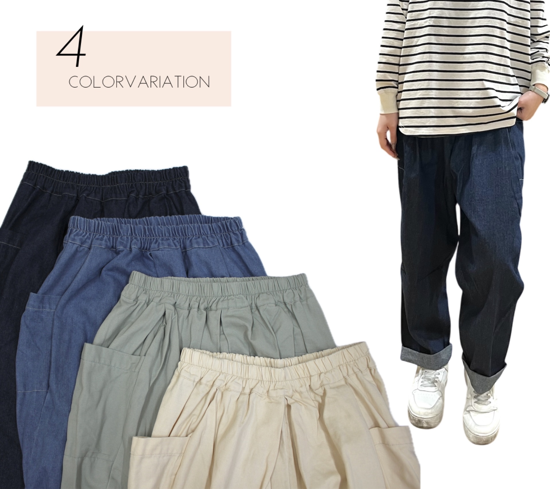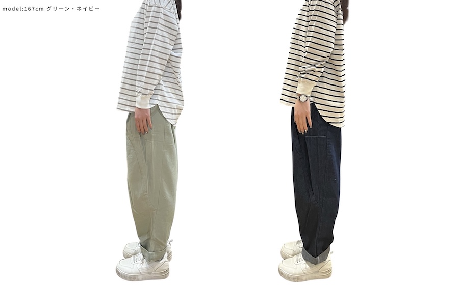 ゆったりとしたシルエットが特徴で、タック入りデザインがオシャレ度をアップさせます。
