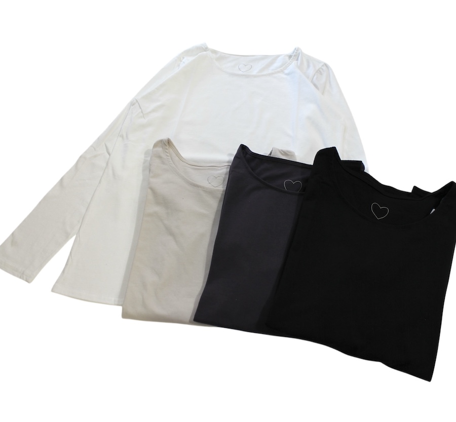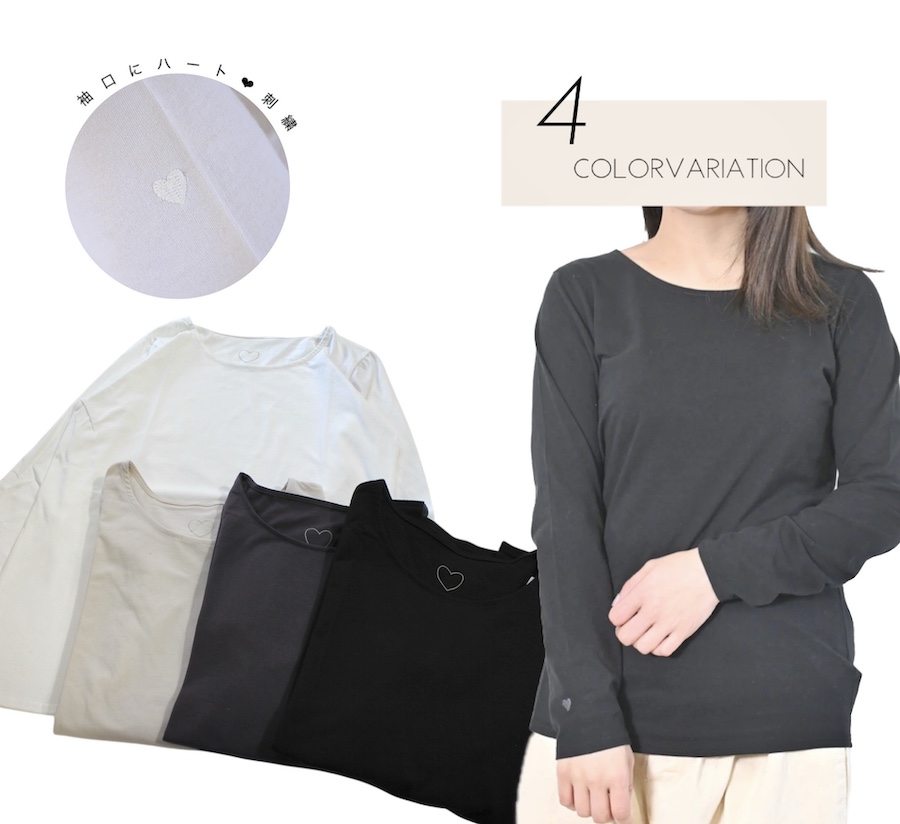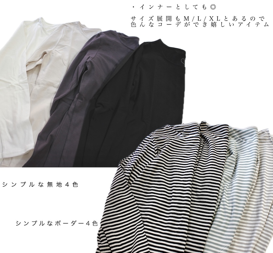 コットン100%で肌触りも抜群。インナーとしても重ね着にもぴったりで、春夏秋冬のロングシーズン活躍します。