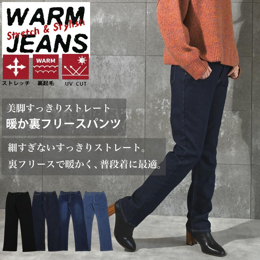 細すぎないすっきりストレート!裏フリースで暖かく普段着に最適アイテム♪